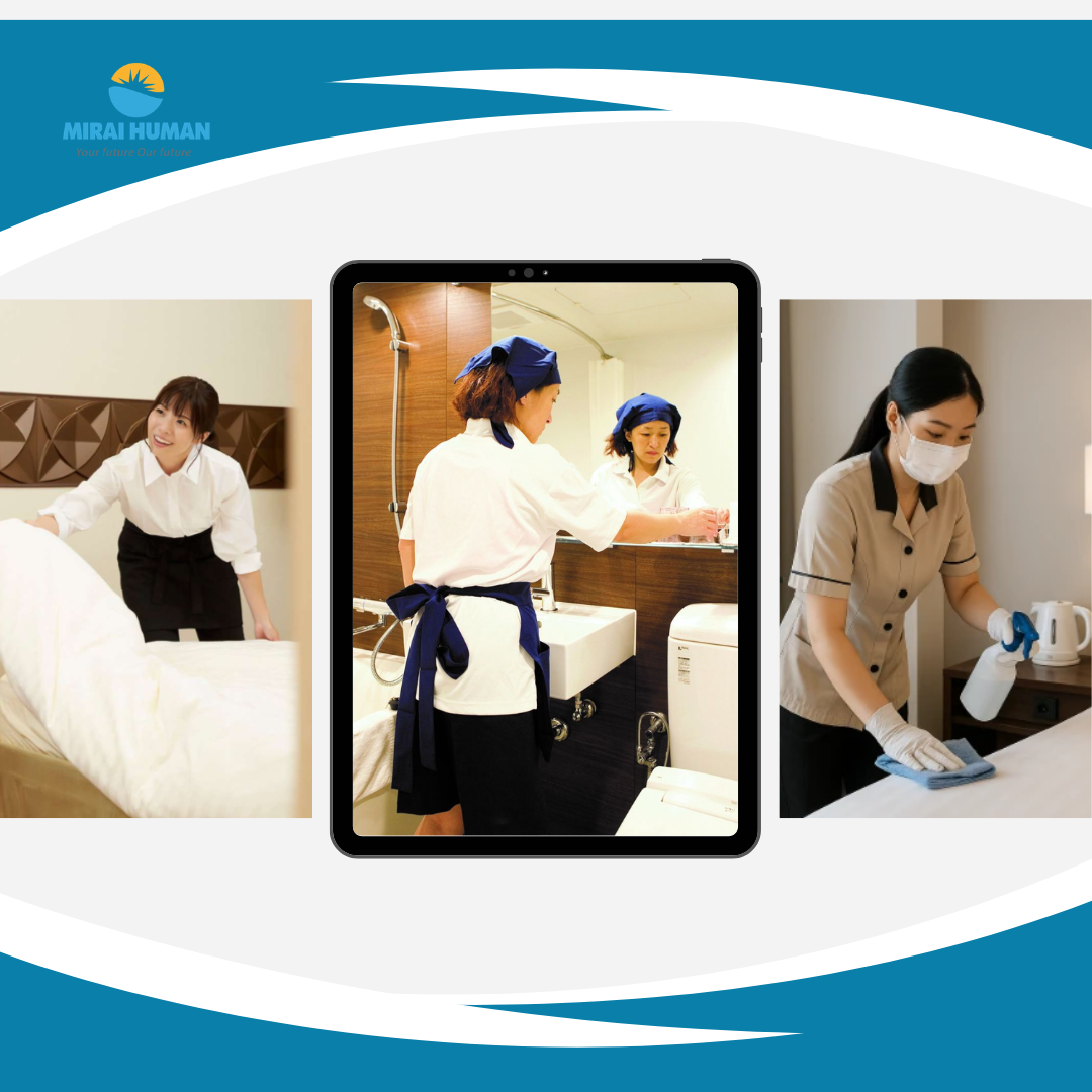 Đây là công việc thuộc lĩnh vực dịch vụ, chủ yếu làm tại các khách sạn, khu nghỉ dưỡng hoặc tòa nhà tại Nhật Bản. Người lao động sẽ đảm nhận các nhiệm vụ liên quan đến: