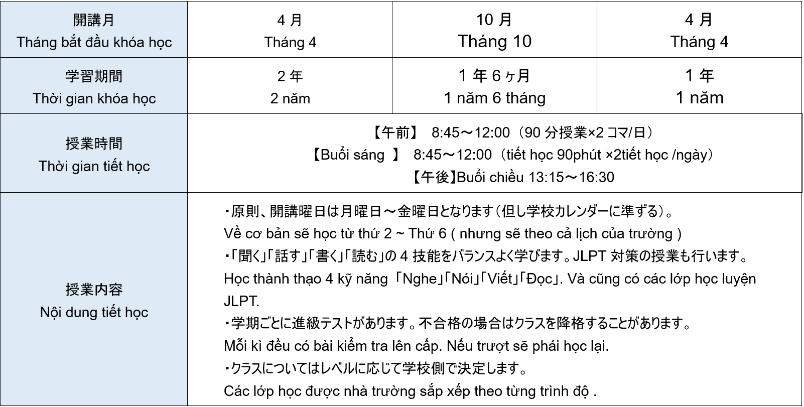 Hãy thông báo thời gian (số chuyến bay, thời gian) nhập cảnh. Vui lòng đến trường trước ngày khai giảng nhập học và làm bài kiểm tra phân lớp .